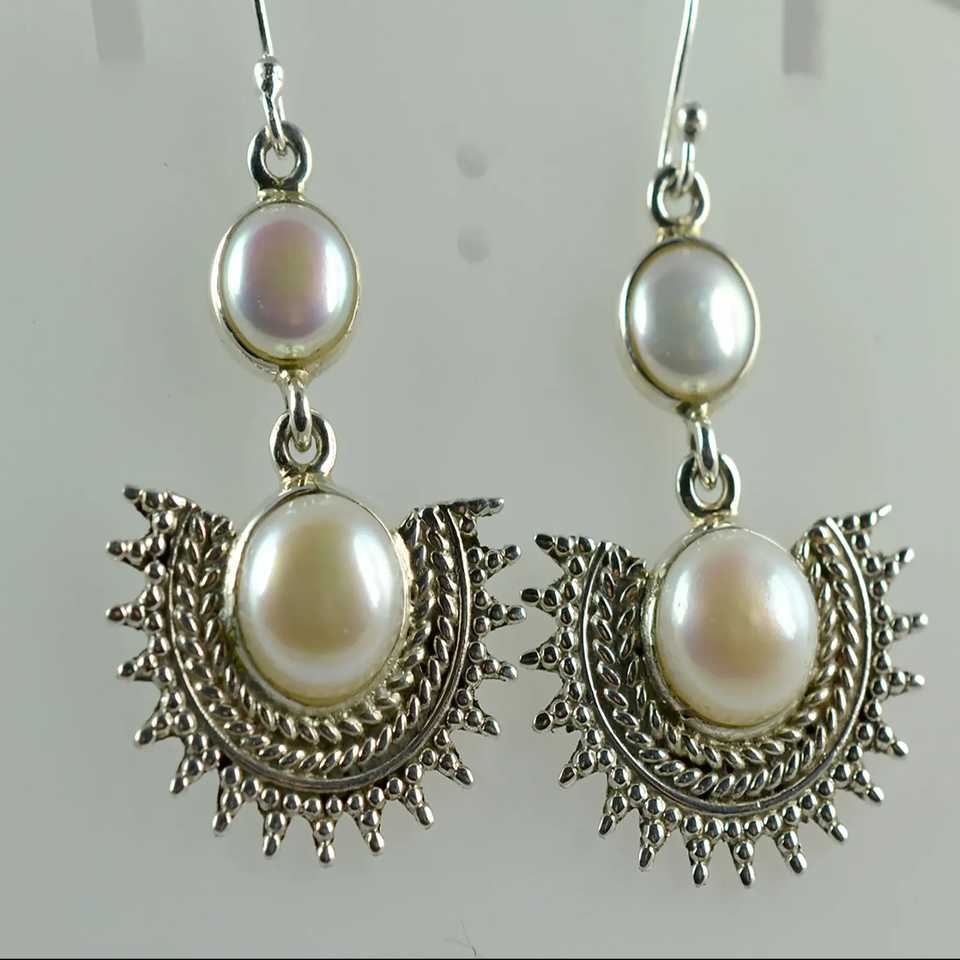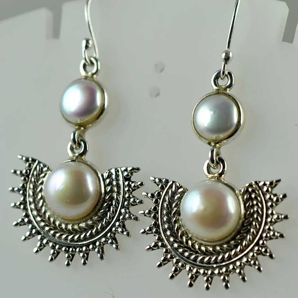 เครื่องประดับสไตล์โบฮีเมียนประจำเดือนมิถุนายน ทำด้วยมือจากเงินแท้ 925 ประดับมุกน้ำจืดสีขาวรูปดาว ของขวัญสุดเพอร์เฟกต์สำหรับเธอ