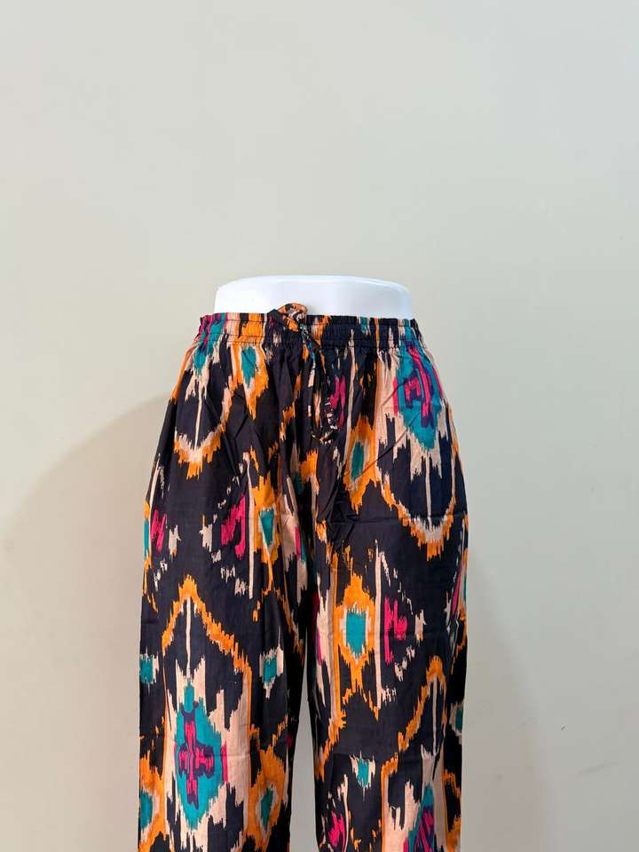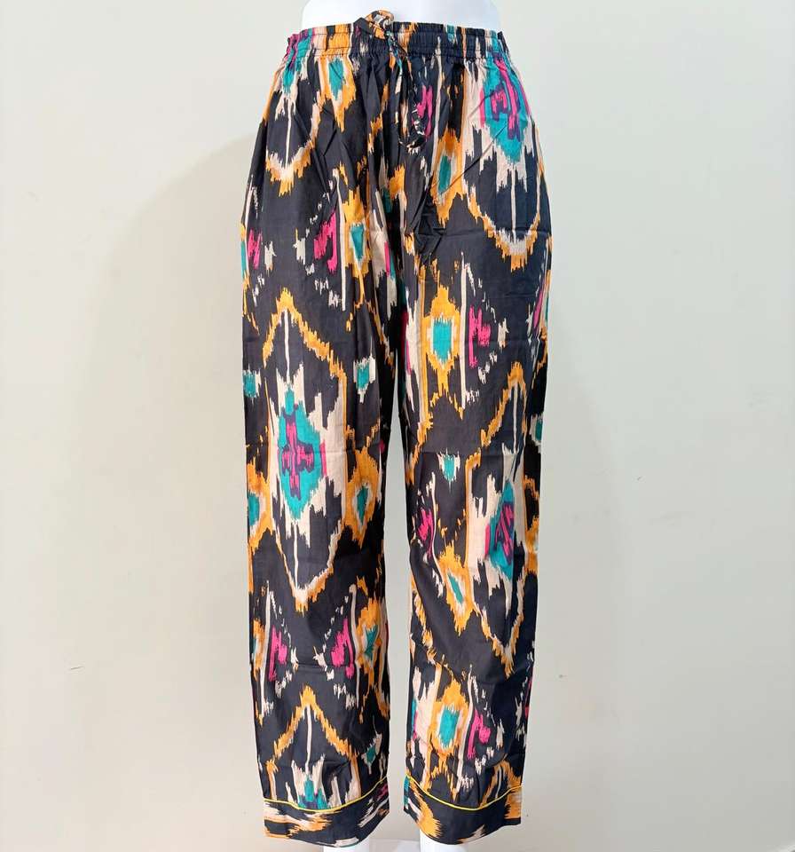 กางเกงพิมพ์ลายป่าสไตล์โบฮีเมียนกางเกงผ้าฝ้าย100% สวรรค์สีเขียวกางเกงมีเชือกผูกสำหรับสวนแบบแปลกใหม่
