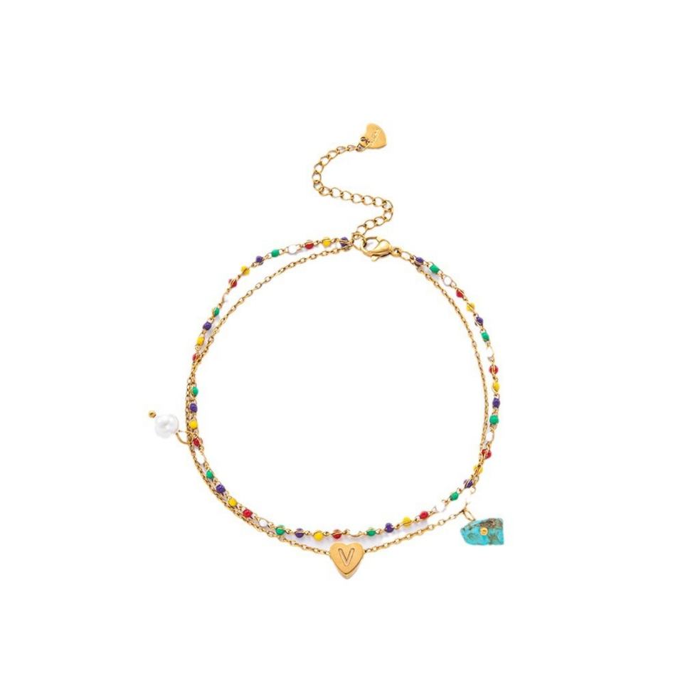 สร้อยข้อเท้าสไตล์โบฮีเมียนแบบหลายชั้นประดับปลาดาวและลูกปัดหลากสี ชุบทอง 18K ทำจากสแตนเลสสตีล 316L ป้องกันการแพ้ เหมาะสำหรับผู้หญิง