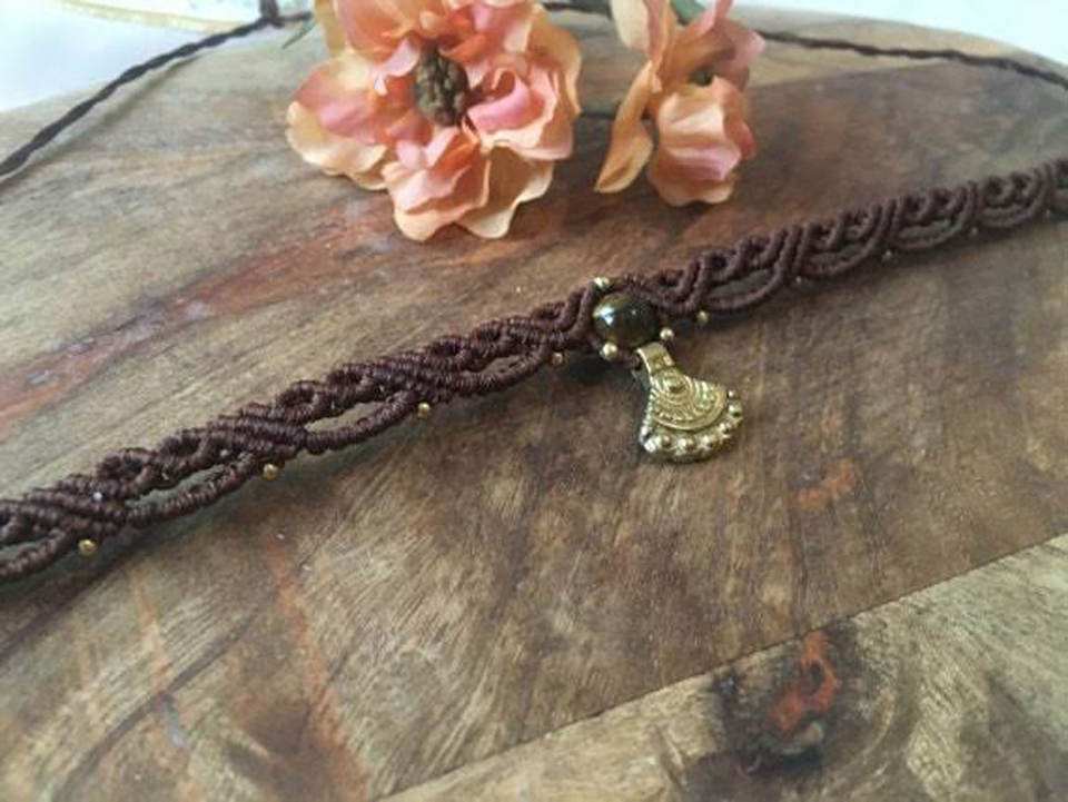 สร้อยคอโบโฮมาคราเม่ เชือกหลากสี ชุบทอง 18K ทำด้วยมือ ปรับขนาดได้