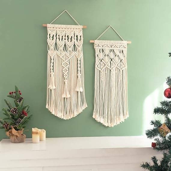 Boho macrame แขวนผนังผ้าฝ้ายพรมแขวนผนังศิลปะไม้ชนบทของตกแต่งบ้านแฮนด์เมดของขวัญคริสต์มาส
