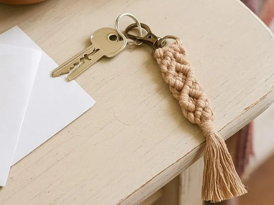 Boho Macrame Wristlet Keychain for Women Handmade Braided Rope Bracelet with Clip Chic Bag Charm Key Holder