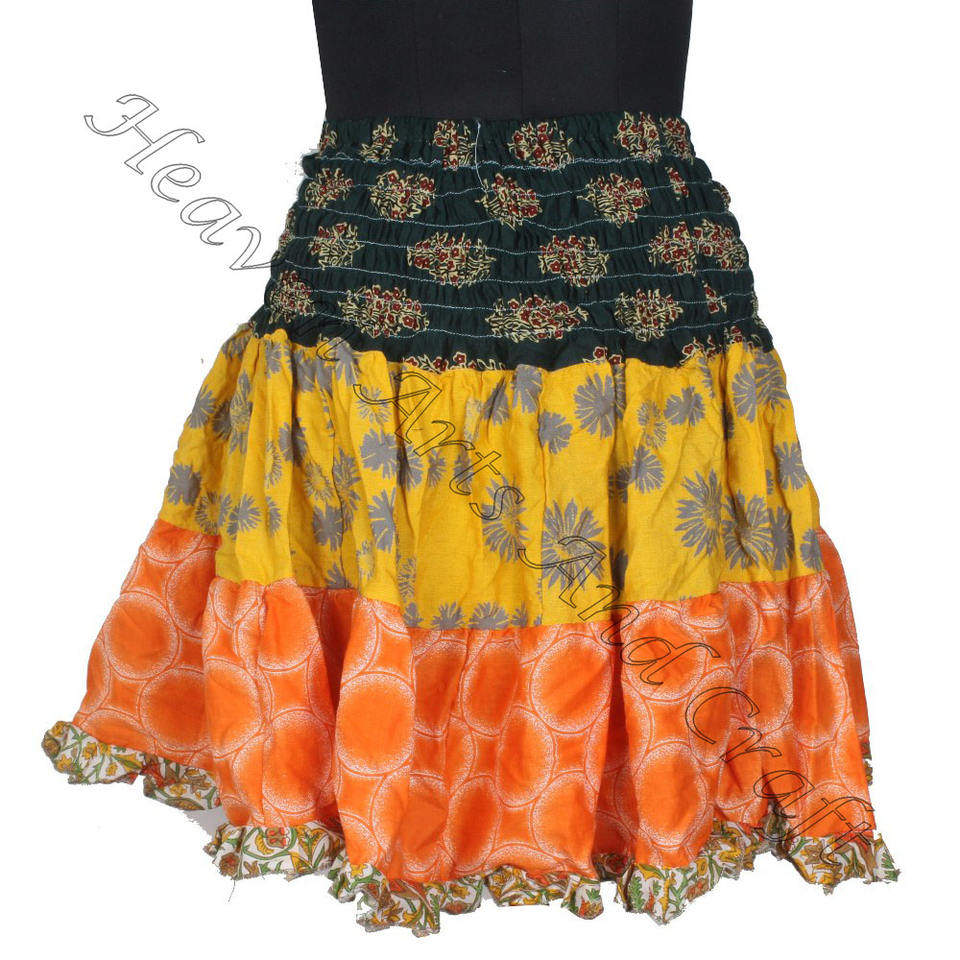 Keywords:Vintage Cotton Sari Patches Mini Skirt