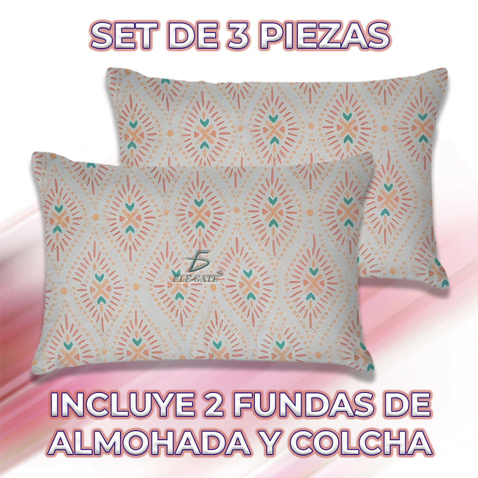 ชุดเครื่องนอนลายโบโฮ2ปลอกหมอนและผ้านวมนุ่ม