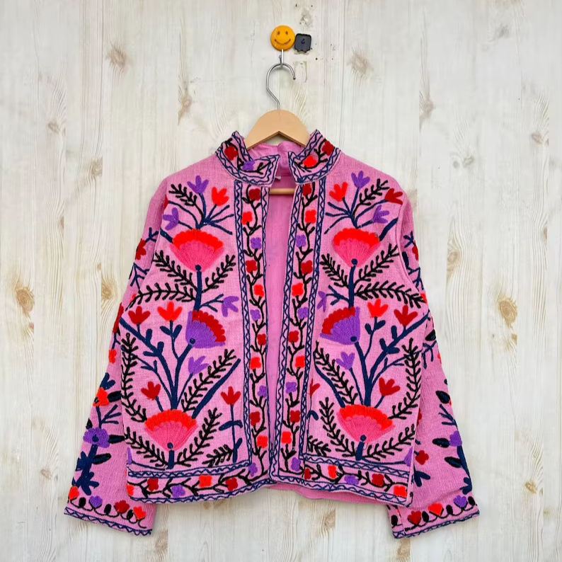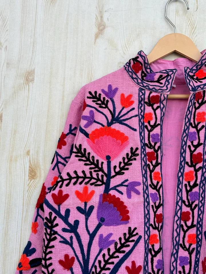 Boho Pink Cotton TNT Suzani Jacket With Pocket Winter Jacket Embroidered Jacket Coat Cotton TNT Jacket Suzani Coat Jacket