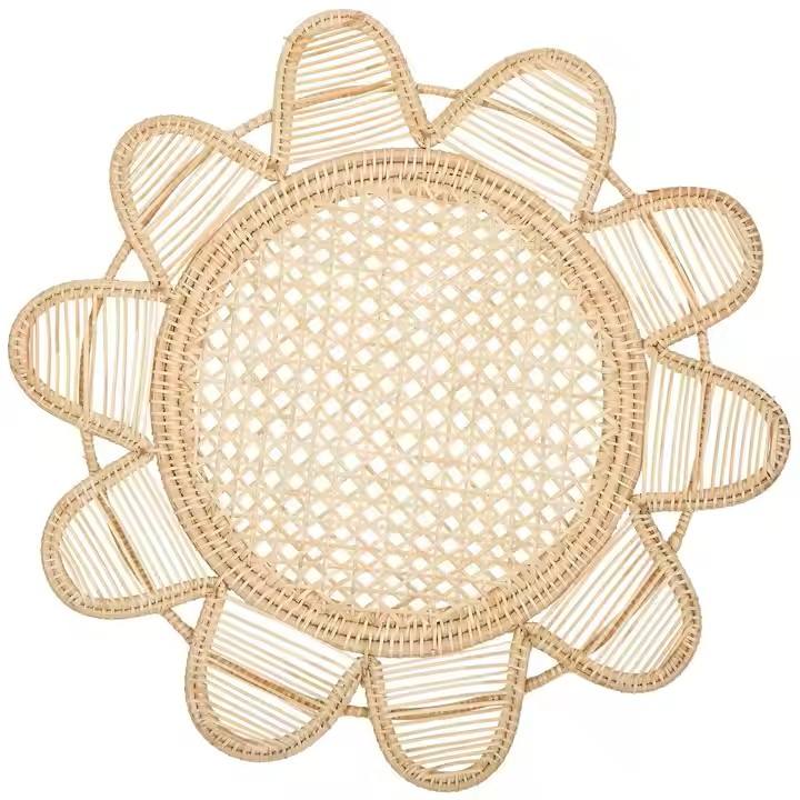 แผ่นรองจานสไตล์โบโฮเสื่อหวายสำหรับตกแต่งโต๊ะกลมดอกไม้ขายส่งเวียดนาม