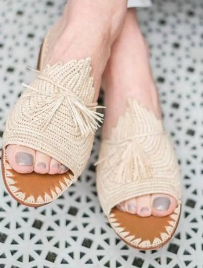 รองเท้าแตะสไตล์โบโฮทำจากเส้นใยราฟเฟีย – รองเท้าสไลด์ทำมือสไตล์โมร็อกโกสำหรับฤดูร้อน