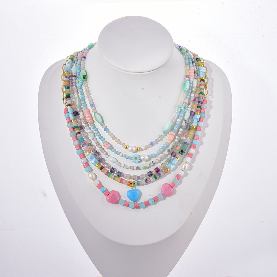 สร้อยคอผู้หญิงสไตล์โบฮีเมียนประดับลูกปัดข้าว หินธรรมชาติหลากสี ดีไซน์ใหม่ ทนทาน ทันสมัย เหมาะสำหรับงานปาร์ตี้