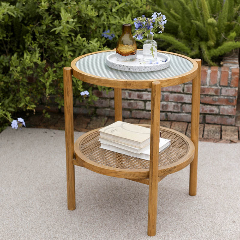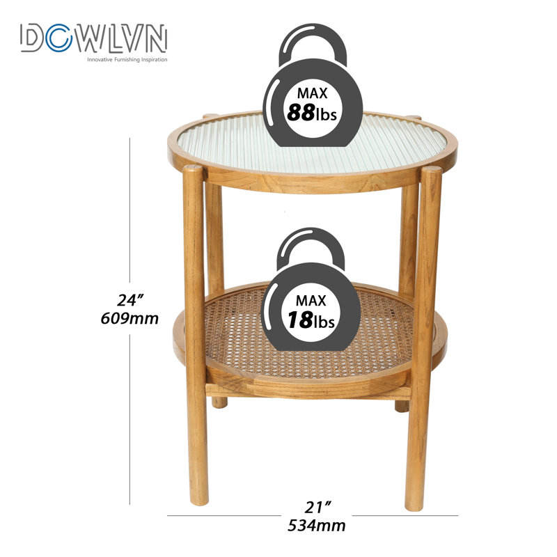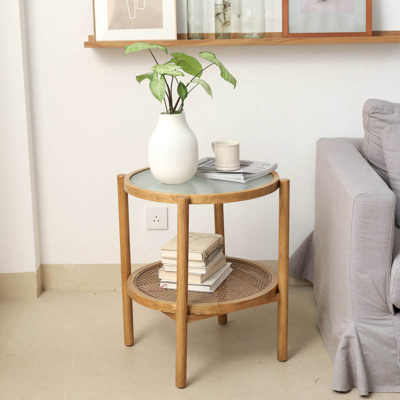 โต๊ะปลายด้านข้างเก็บของทรงกลมสไตล์โบโฮทำจากแก้วทำมือไม้หวายสำหรับเฟอร์นิเจอร์ห้องนั่งเล่น