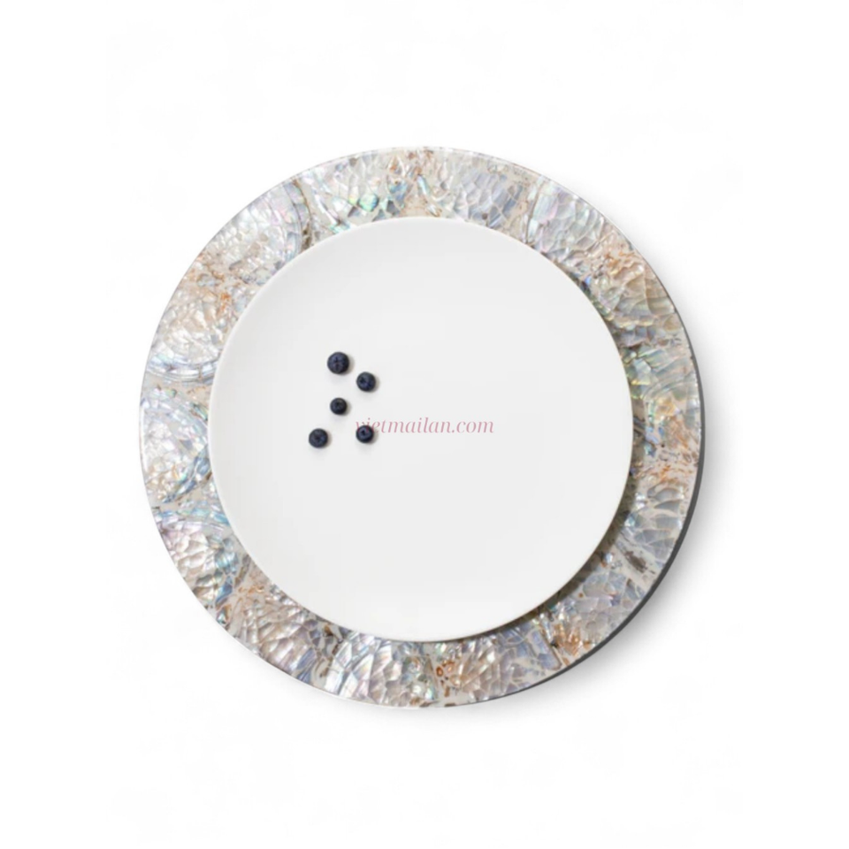 จานรองอาหารทรงโบโฮเคลือบมุกสำหรับตกแต่งโต๊ะงานแต่งงานสไตล์ชายทะเลและงานอีเวนต์สุดหรู