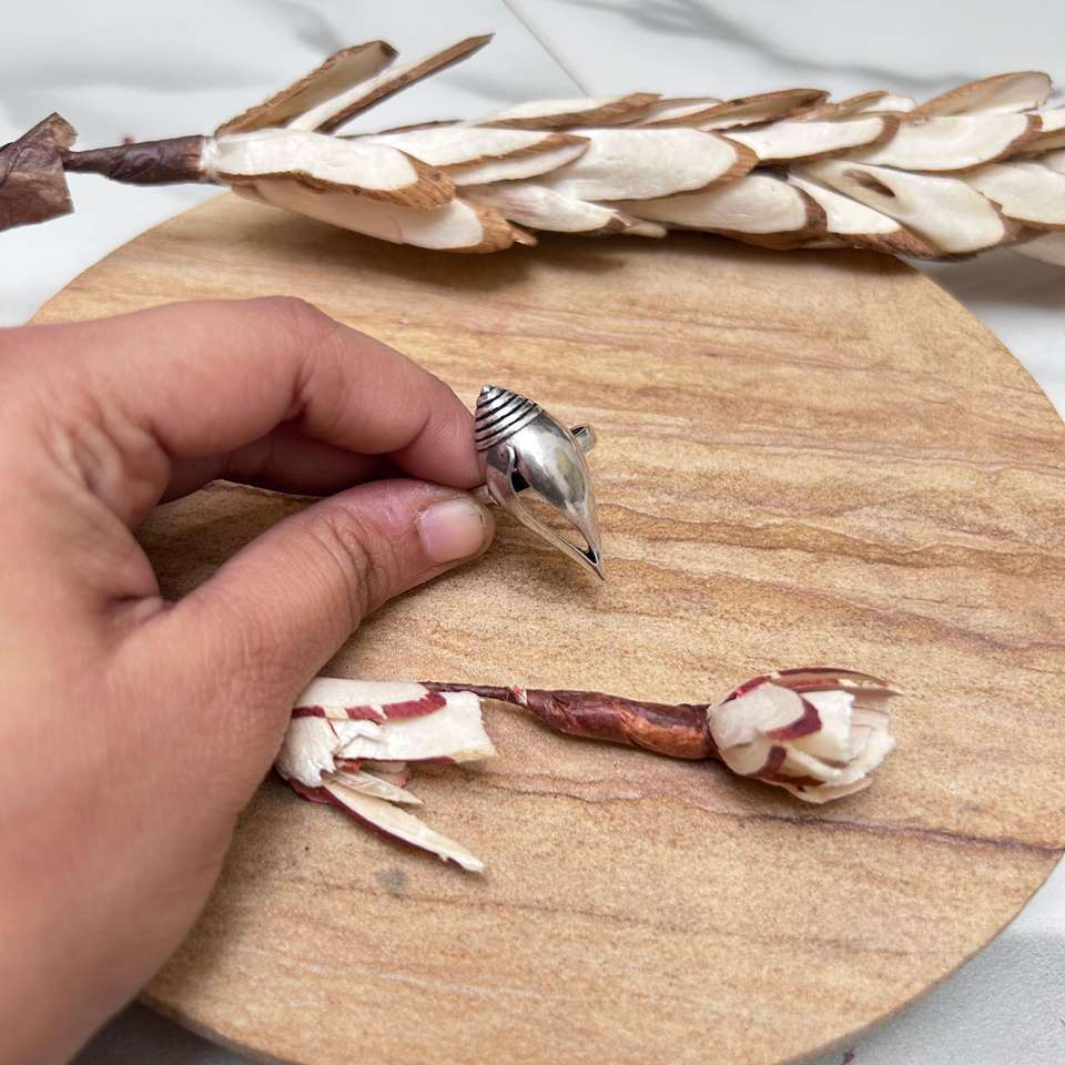 แหวนเปลือกหอยสไตล์โบฮีเมียน แหวนทองเหลืองลายชนเผ่าสำหรับผู้หญิง ชุบเงินแบบออกซิไดซ์ ดีไซน์เปลือกหอยแบบชาติพันธุ์ ขายส่ง