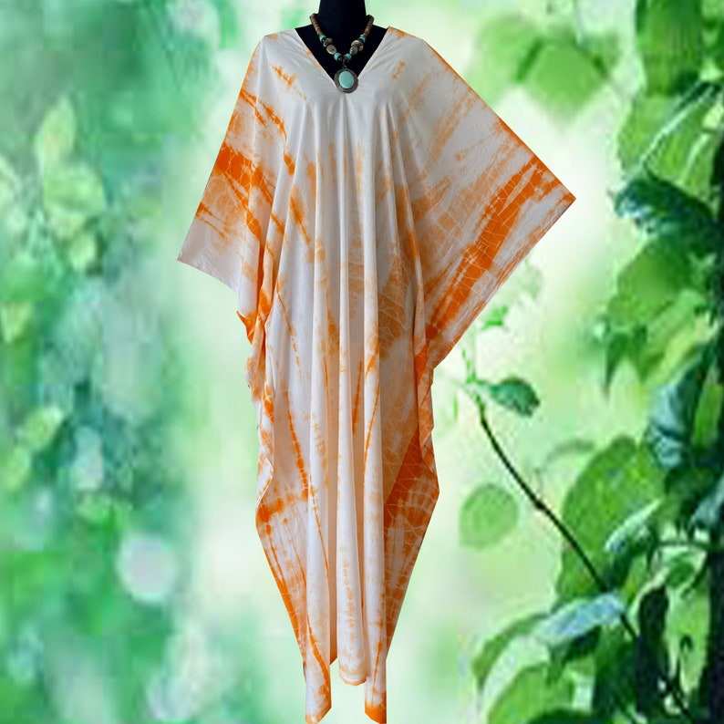 ชุดเดรสคาฟทันลายมัดย้อมสไตล์โบโฮ ผ้าเรยอน ไซส์พลัส สำหรับคลุมชุดว่ายน้ำหรือใส่พักผ่อน