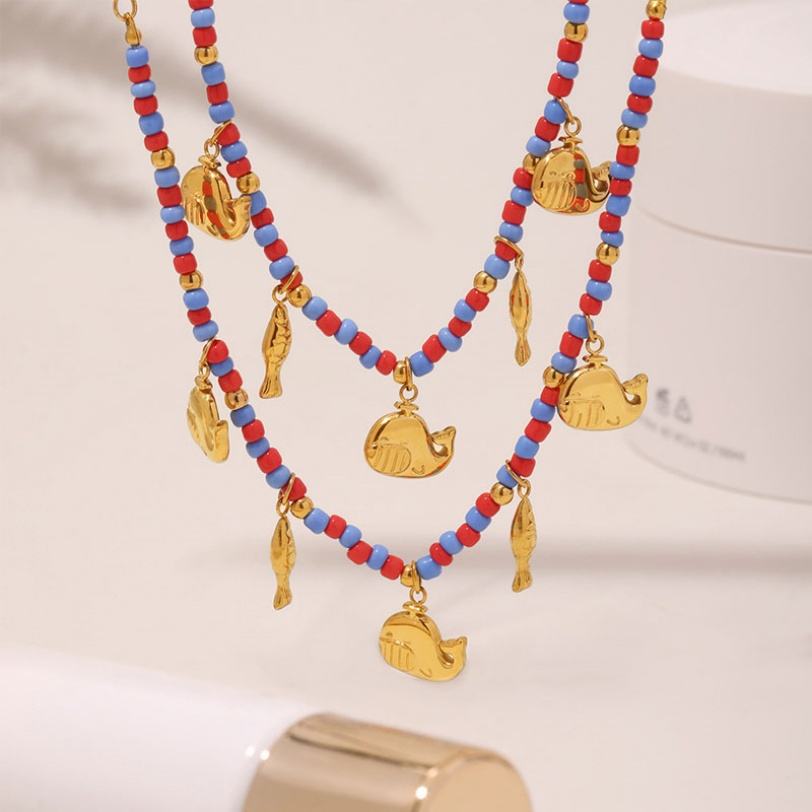 สร้อยคอแฟชั่นสไตล์โบฮีเมียน ชุบทอง 14k สำหรับผู้หญิง ทำจากสแตนเลสสตีล 316L PVD ประดับลูกปัดหลากสี พร้อมจี้