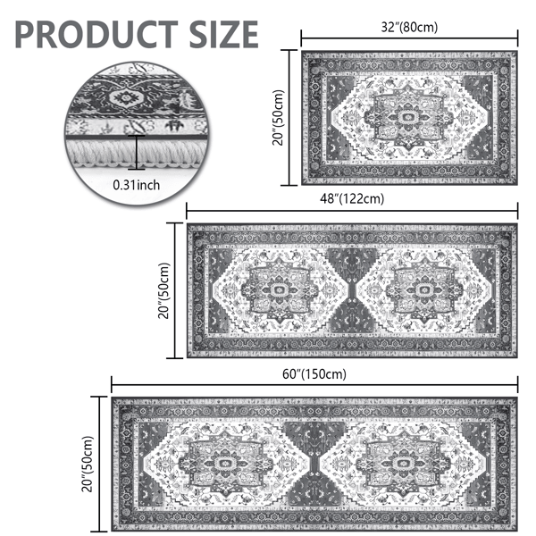 ชุดพรมครัว 3 ชิ้น สไตล์โบโฮ กันลื่น หนานุ่ม ซักได้ พรมปูพื้น พรมปูพื้นทางเดิน
