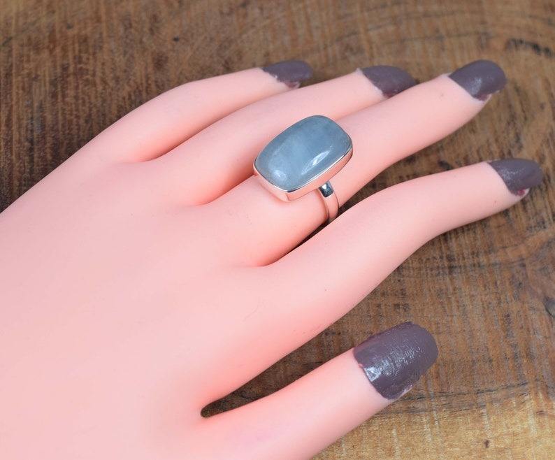 แหวนเงินแท้ 925 สไตล์โบฮีเมียน ประดับพลอยอะความารีน แหวนหมั้นทำมือสำหรับผู้หญิง ของขวัญงานแต่งงานและงานปาร์ตี้ เครื่องประดับ