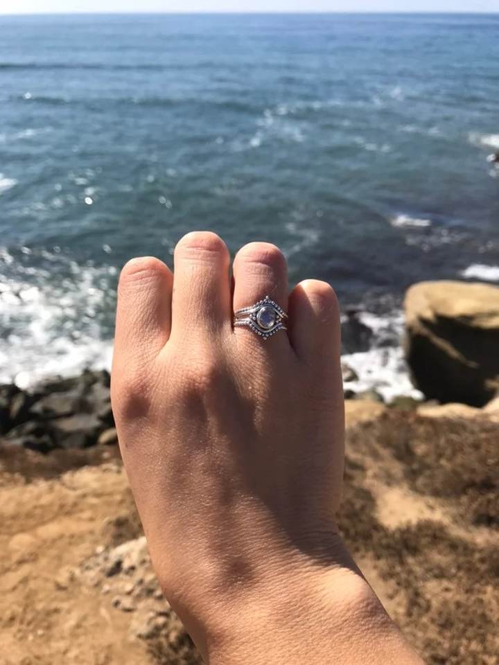 แหวน925สไตล์โบฮีเมียนสีรุ้งประดับพลอยสีเงินแท้ดีไซน์ไม่เหมือนใครของขวัญงานหมั้นสำหรับงานแต่งงานวันเกิด