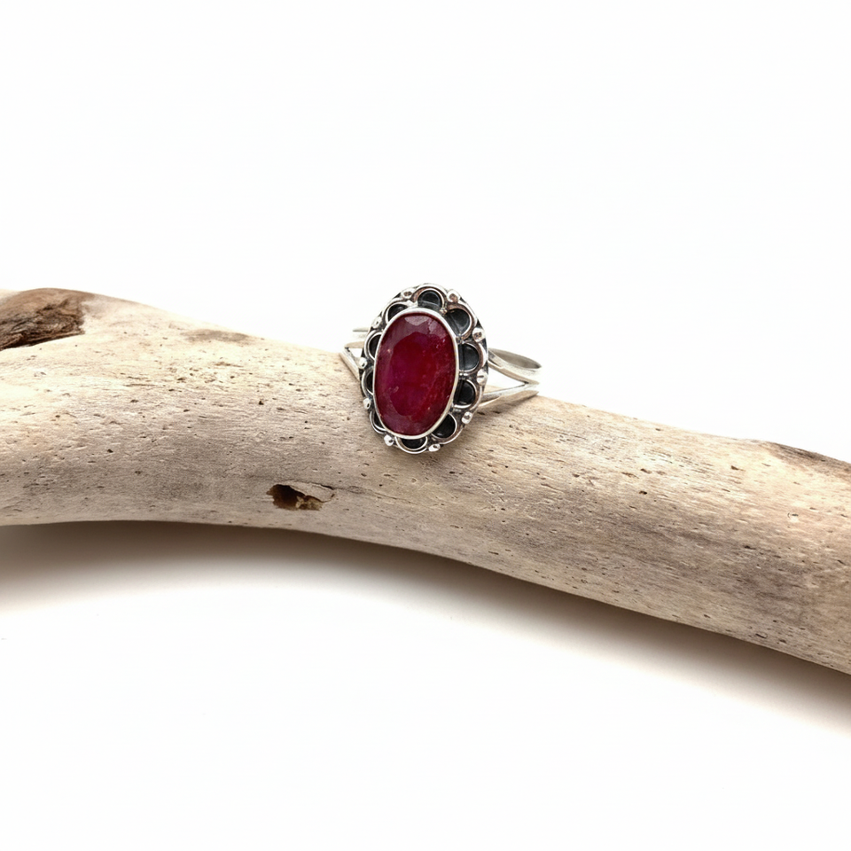 แหวนเงินแท้ 925 ประดับทับทิม สไตล์โบฮีเมียน ชุบโรเดียม ทำมือ ของขวัญสำหรับผู้หญิงในงานแต่งงานและงานปาร์ตี้