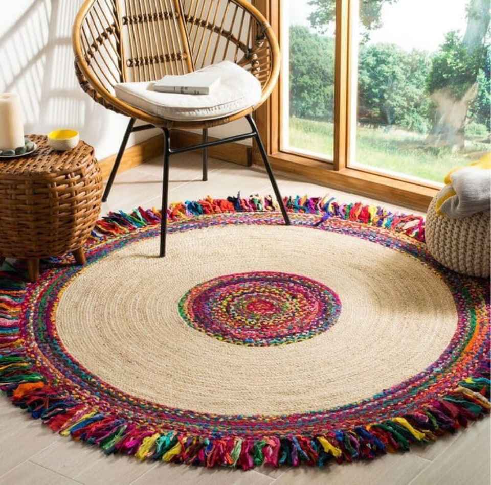 พรมสไตล์โบโฮ ทำจากปอกระเจา 100% นุ่มสบายและซักทำความสะอาดได้ เหมาะสำหรับห้องนอนและห้องนั่งเล่น