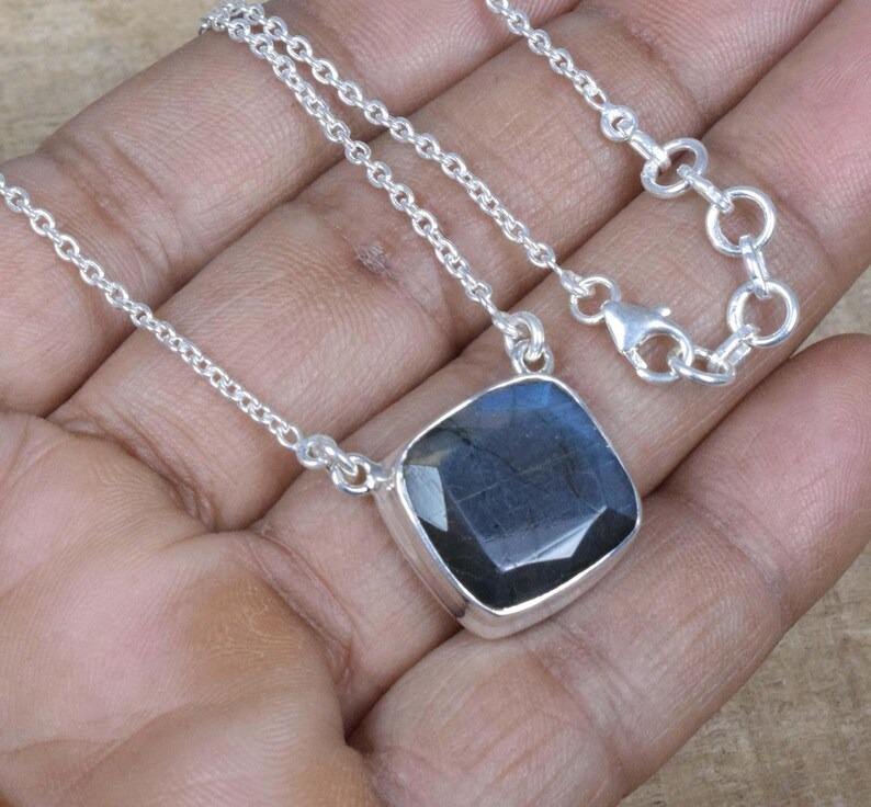 เครื่องประดับจี้สไตล์โบฮีเมียนคลาสสิกสำหรับผู้หญิง เครื่องประดับเงินแท้ 925 ประดับพลอยลาบราโดไรต์ จี้ทำมือ ของขวัญ