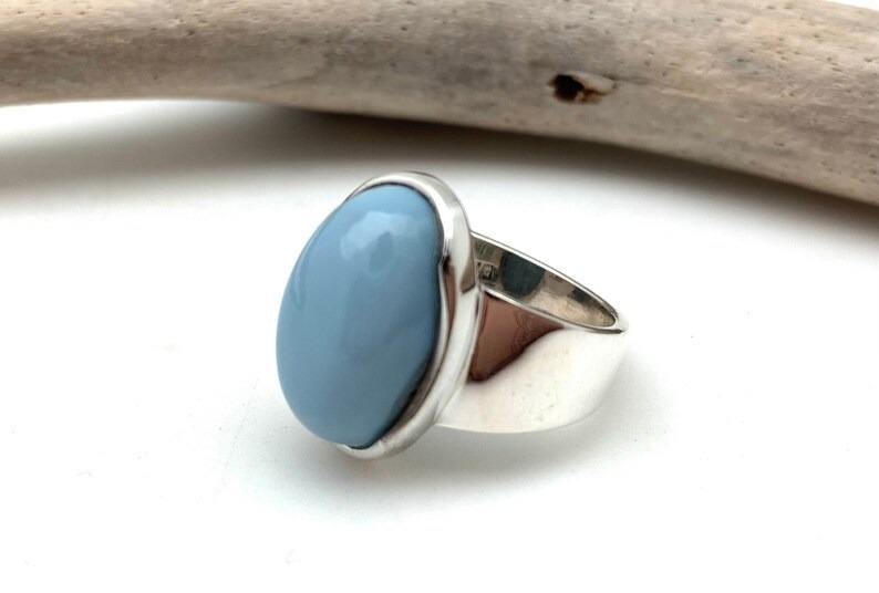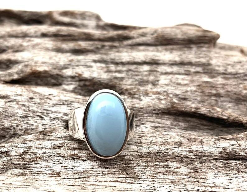 เครื่องประดับแหวนคลาสสิกสไตล์ Boho สำหรับผู้หญิงเครื่องประดับเงิน925สเตอร์ลิงเงิน Larimar พลอยแฮนด์เมดของขวัญสำหรับความรัก