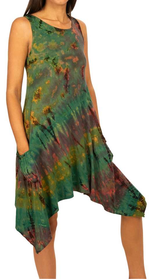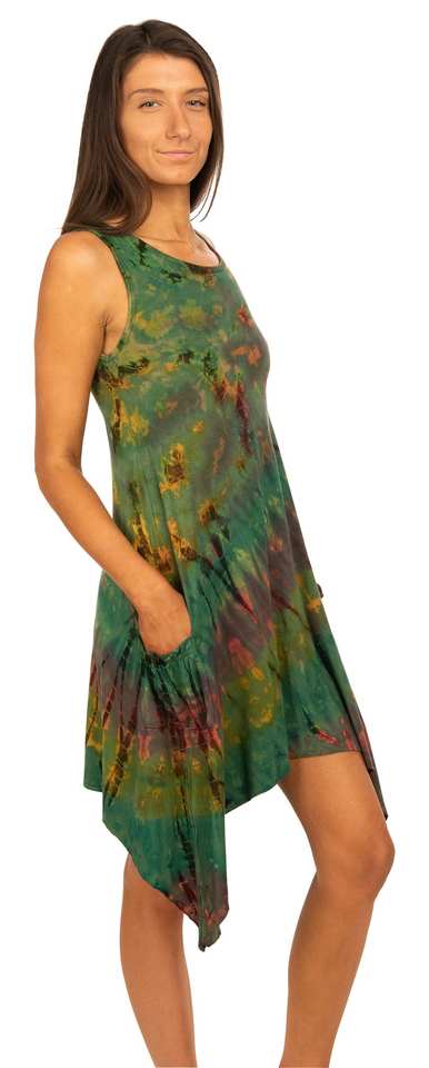 Boho Tie Dye Pocket Sundress Rayon Spandex Summer Dress