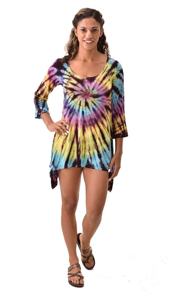 ชุดเดรสผ้าเรยอนลายมัดย้อมสไตล์โบฮีเมียนสำหรับงานเทศกาล