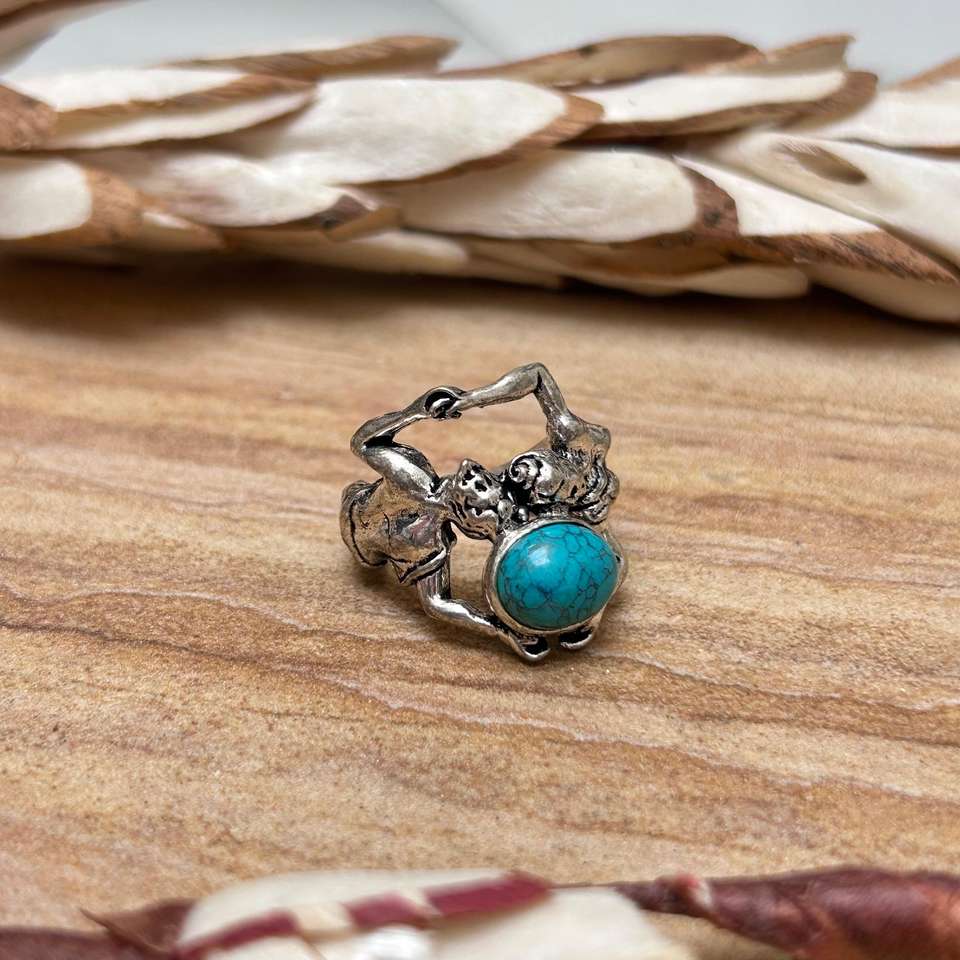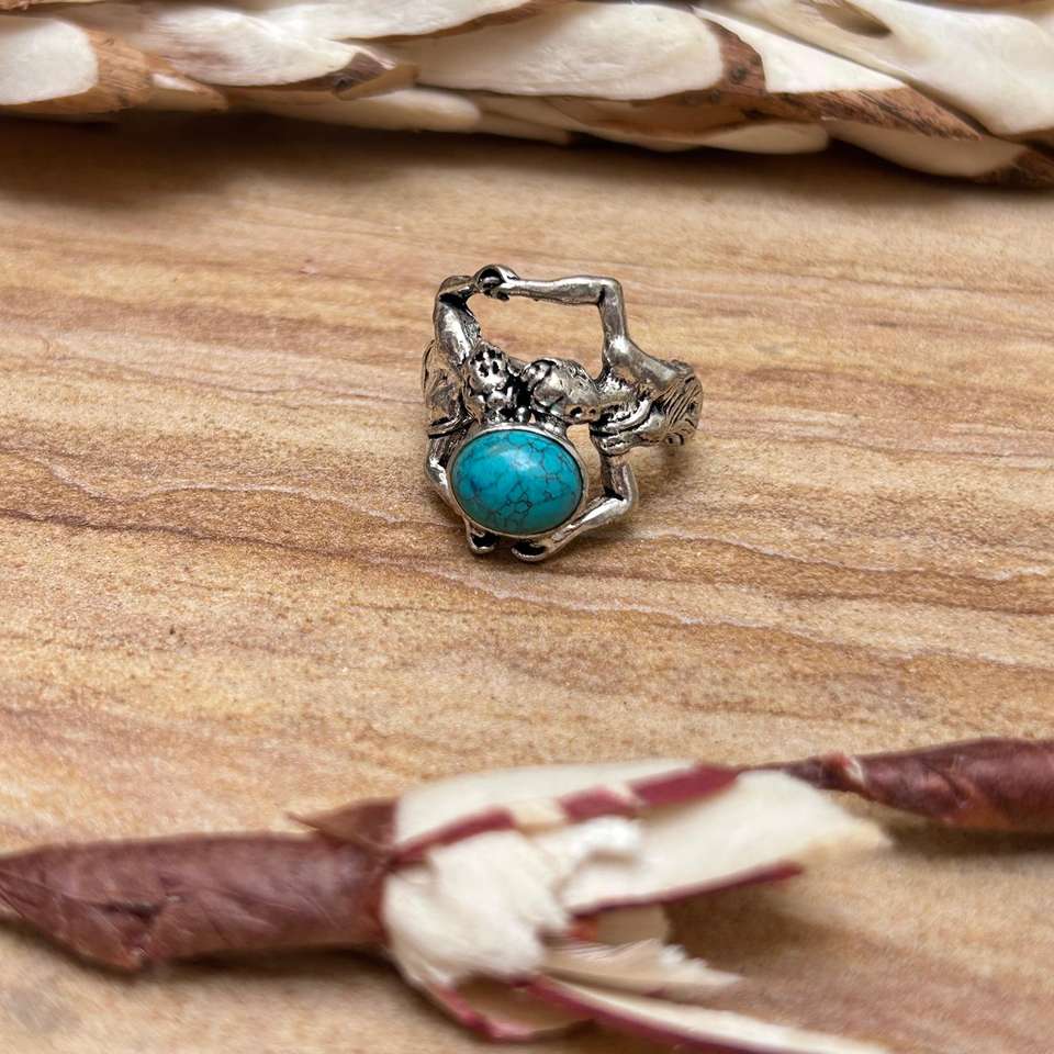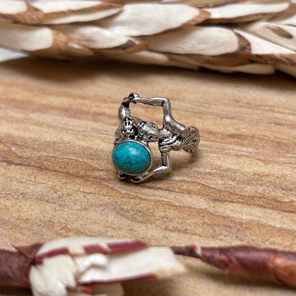 แหวนโบโฮลายชนเผ่าสีเทอร์ควอยซ์สำหรับผู้หญิง แหวนทองเหลืองสไตล์วินเทจ แหวนเงินชุบสไตล์ยิปซี แหวนทองเหลืองลายชนเผ่า ขายส่ง