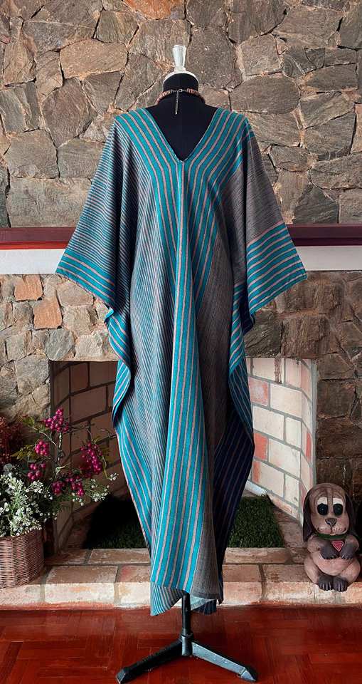 เดรสคาฟทันลายทางสไตล์โบฮีเมียน คอวี ผ้าเรยอน ทรงหลวม ฟรีไซส์ สำหรับผู้หญิง