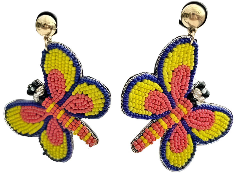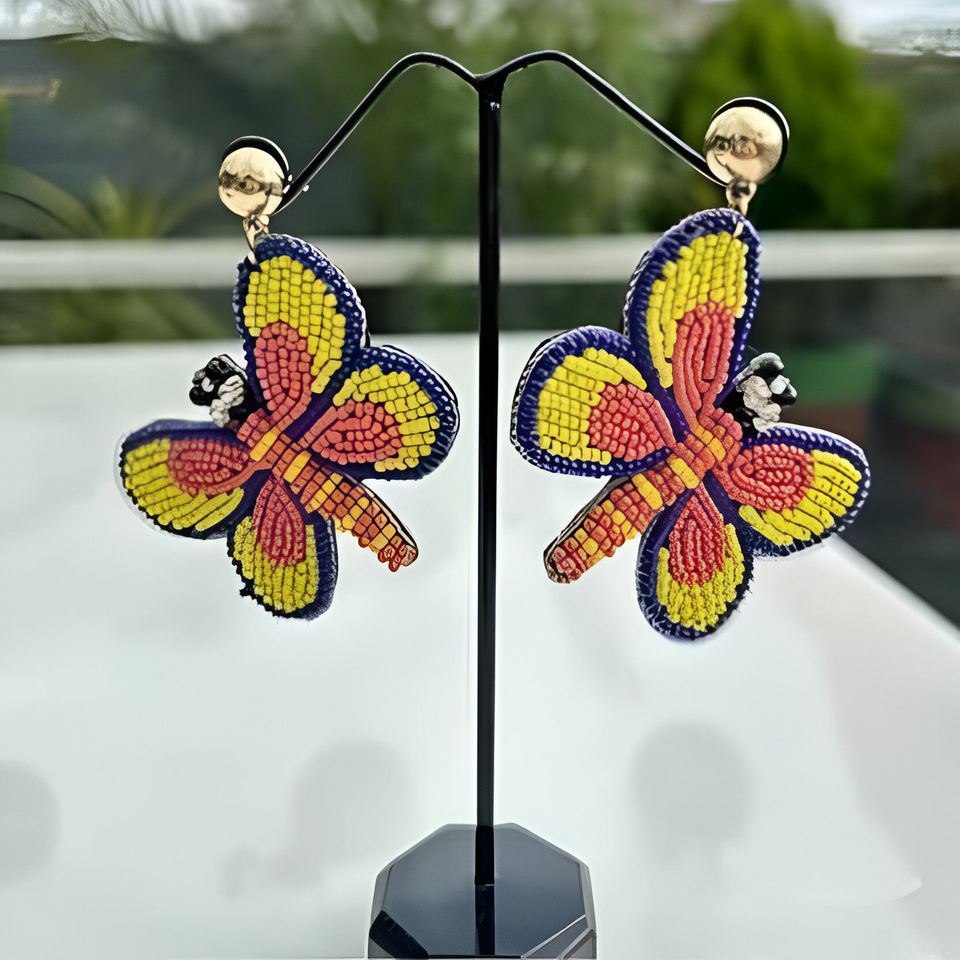 Boho เครื่องประดับแฟชั่นวินเทจต่างหูขนาดใหญ่ต่างหูลูกปัดปักผีเสื้อผู้ผลิตอินเดีย