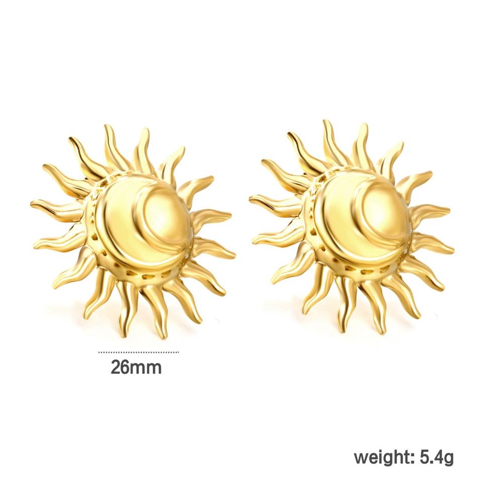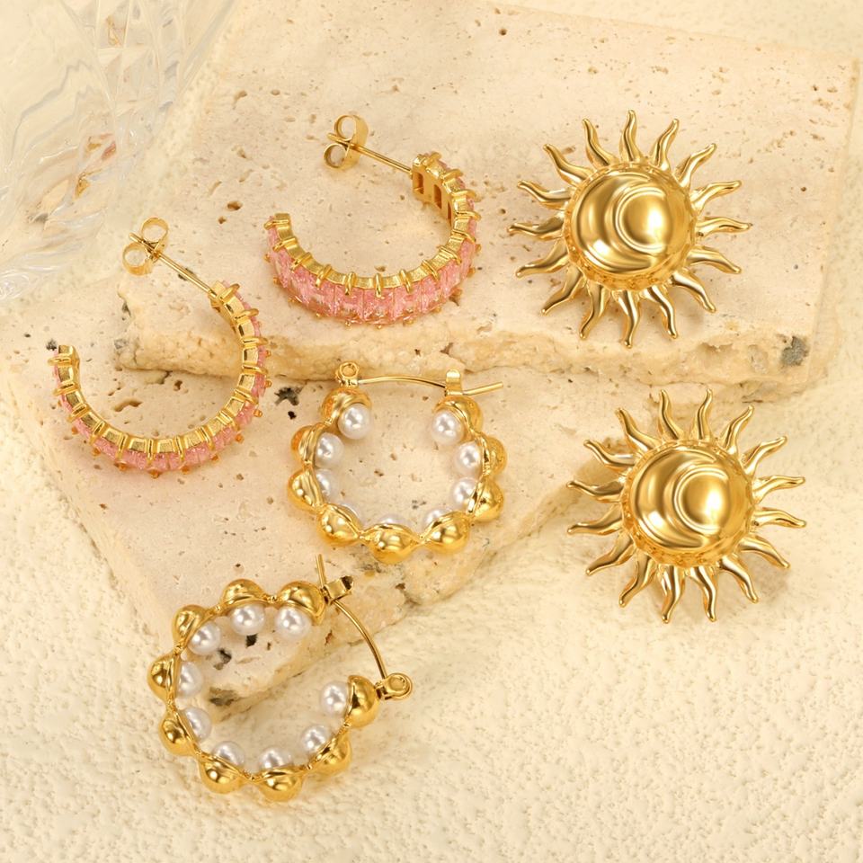 ต่างหูสไตล์โบฮีเมียนวินเทจ ชุบทอง 18K ทำจากสแตนเลส รูปพระจันทร์เสี้ยวและพระอาทิตย์ ประดับเพชรซิร์คอนและมุก สำหรับผู้หญิง