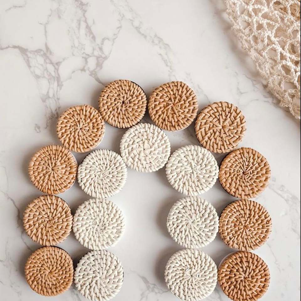 มือจับประตูแบบลิ้นชักตู้ไม้สานสไตล์โบโฮคาราเมลสีขาวสำหรับโรงงาน