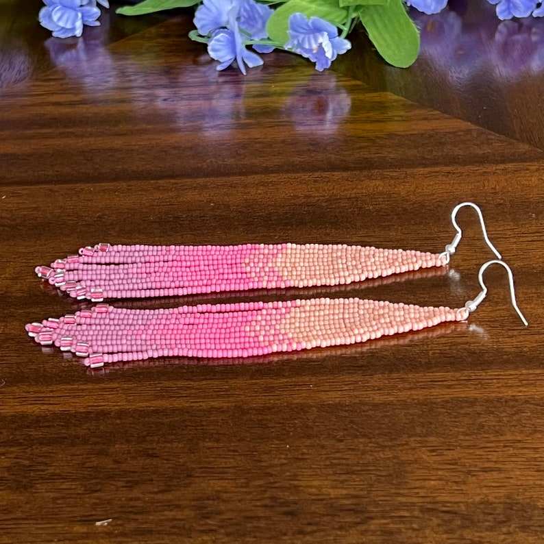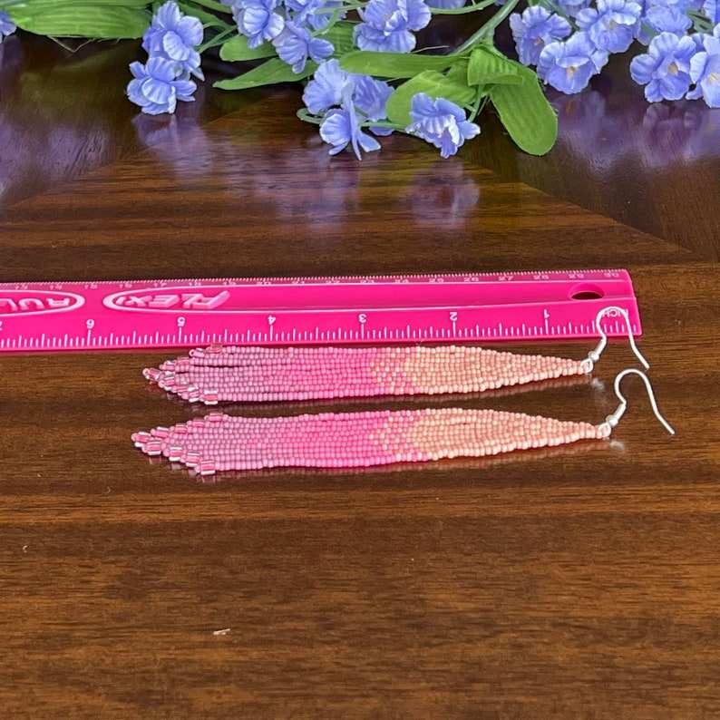 Boho bead earrings with turquoise design andy cascading fringe, unique jewelry gift
