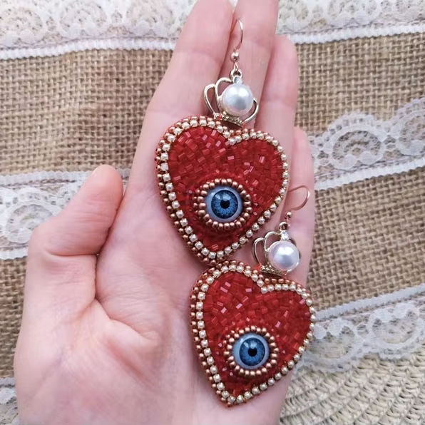 ต่างหูลูกปัดแก้วดีไซน์ทันสมัยประดับด้วยเทอร์ควอยซ์และพู่ห้อยระย้า ของขวัญเครื่องประดับสุดพิเศษจาก MS Handicraft