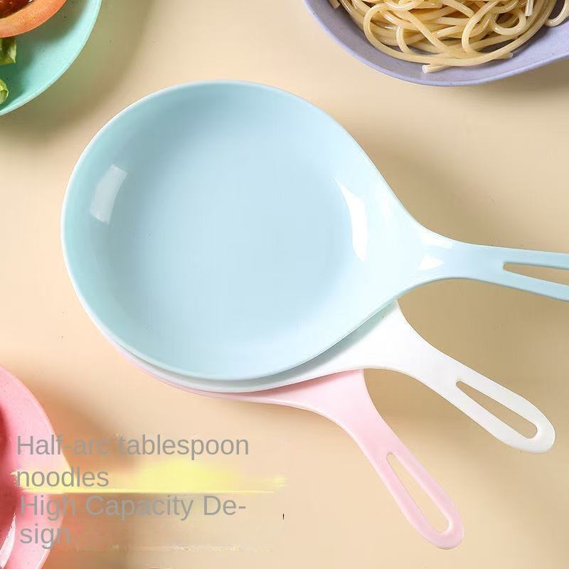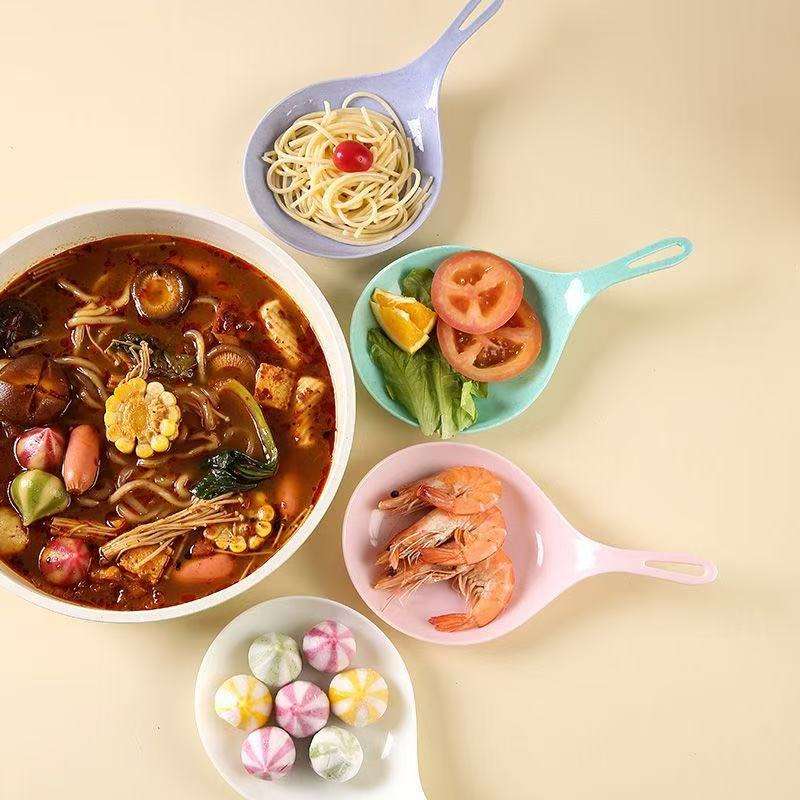 ชุดอาหารเด็กแบบเกาหลี จานมีหูจับ ช้อนใหญ่สีขาว สำหรับถ่ายทอดสดอาหาร บ็อกกี้ อีทติ้ง บรอดคาสติ้ง แบบอินเทอร์เน็ตเรด