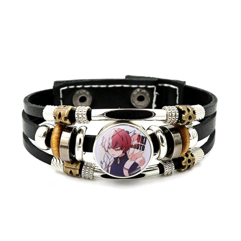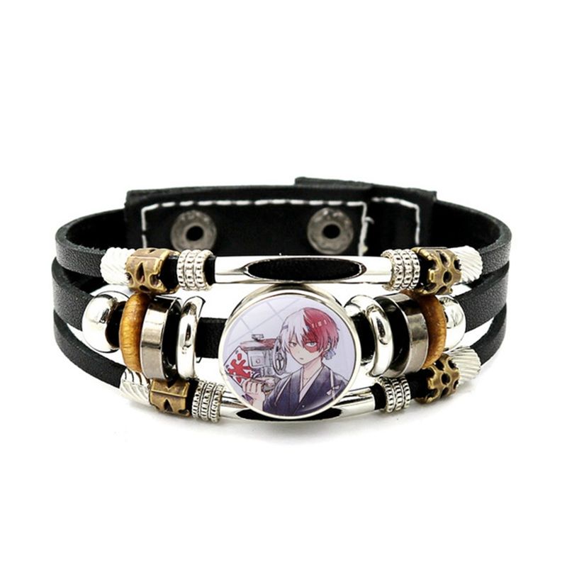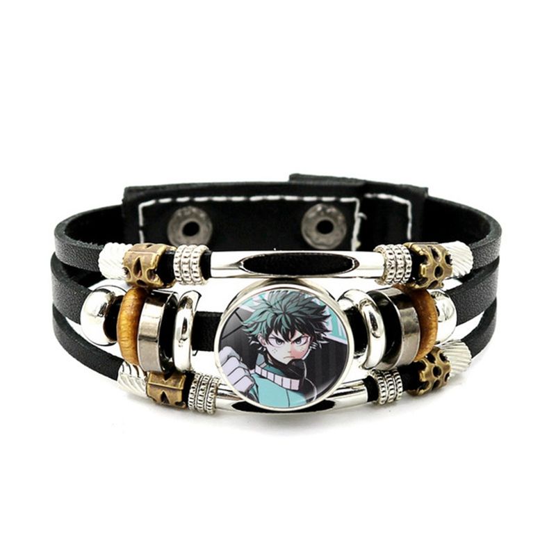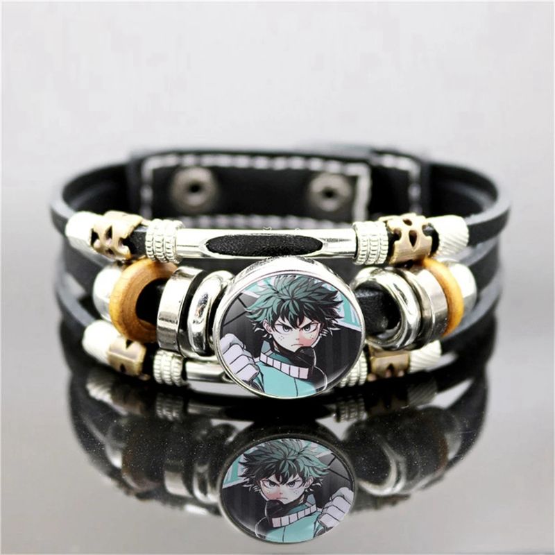 Boku No Hero Academia Retro Bracelet My Hero Academia Snap Button Jewelry Multilayer Weave Kids Boy Punk Leather Bracelet Men