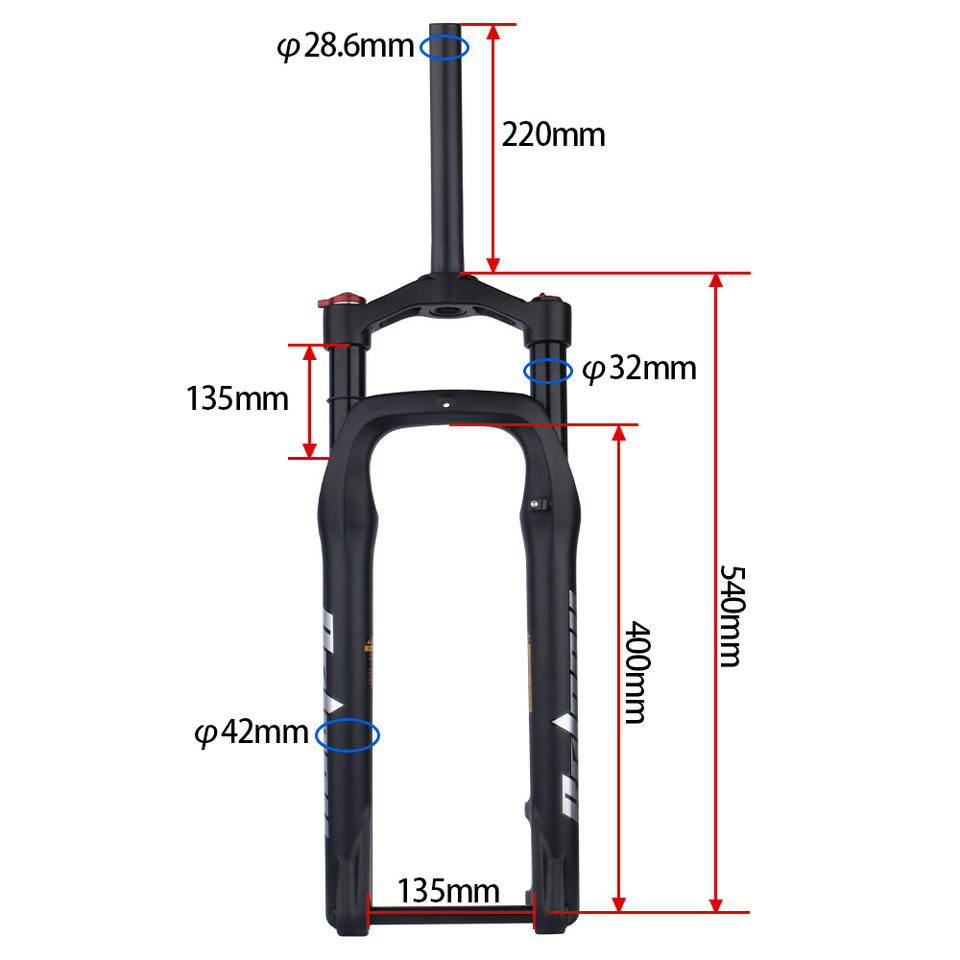 โช้คหน้าจักรยานเสือภูเขา Bolany รุ่น PF-30 ขนาด 26 นิ้ว ยาง 4.0 นิ้ว แบบ Thru Axle ระบบกันสะเทือนลม ปรับรีบาวด์ได้ 15x135 มม.