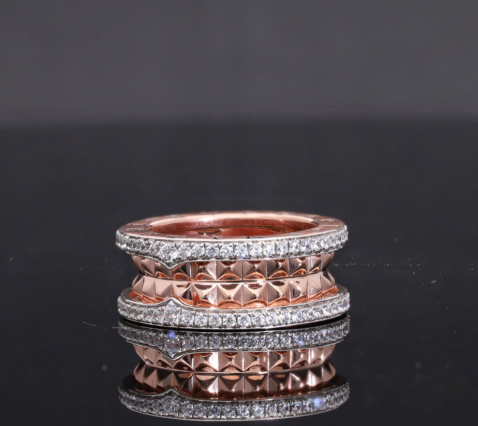 แหวนผู้หญิงดีไซน์คลาสสิก ชุบโรเดียมทองคำชมพู 14K ลายพีระมิด ประดับเพชรแท้แบบดับเบิ้ลฮาโล ขอบขัดเงา