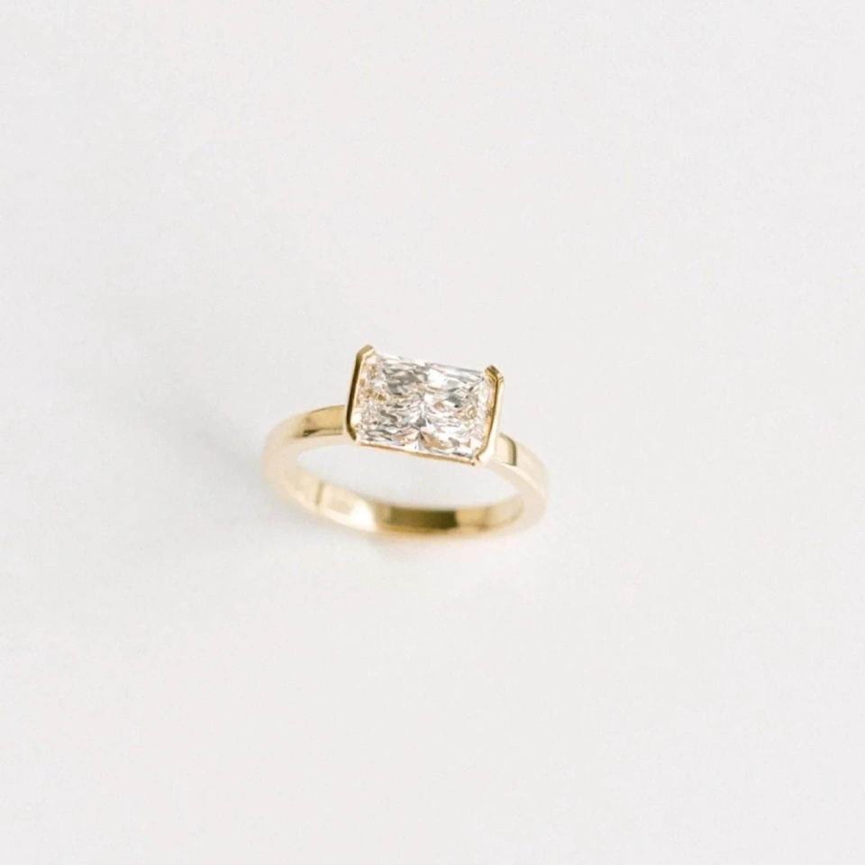แหวนเพชรโมอิส2.7กะรัตแบบครึ่งกรอบพร้อมแหวนมหาวิหาร2.2มม. เป็นของขวัญ