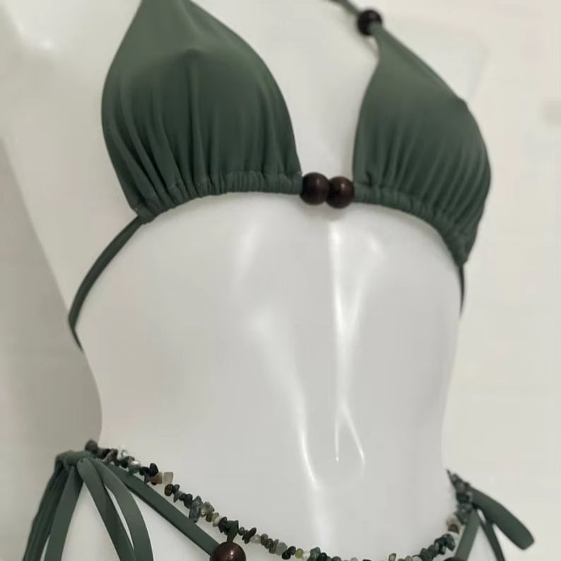 ชุดชายหาดแบบชิ้นเดียวประดับด้วยลูกปัดหนาชุดบิกินี่2ชิ้นสำหรับเที่ยวชายหาดเซ็กซี่และพร้อมใส่ออกแบบได้เอง