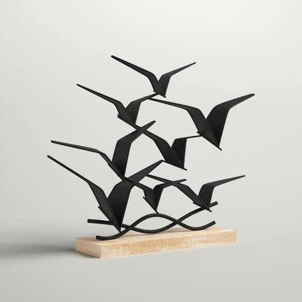 รูปปั้นนกโลหะสีดำ งานออกแบบตกแต่งสไตล์โมเดิร์น สำหรับพื้นที่ร่วมสมัย ผลิตด้วยมือจากอินเดีย