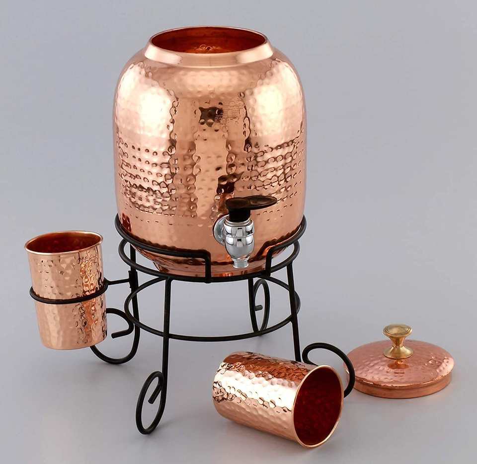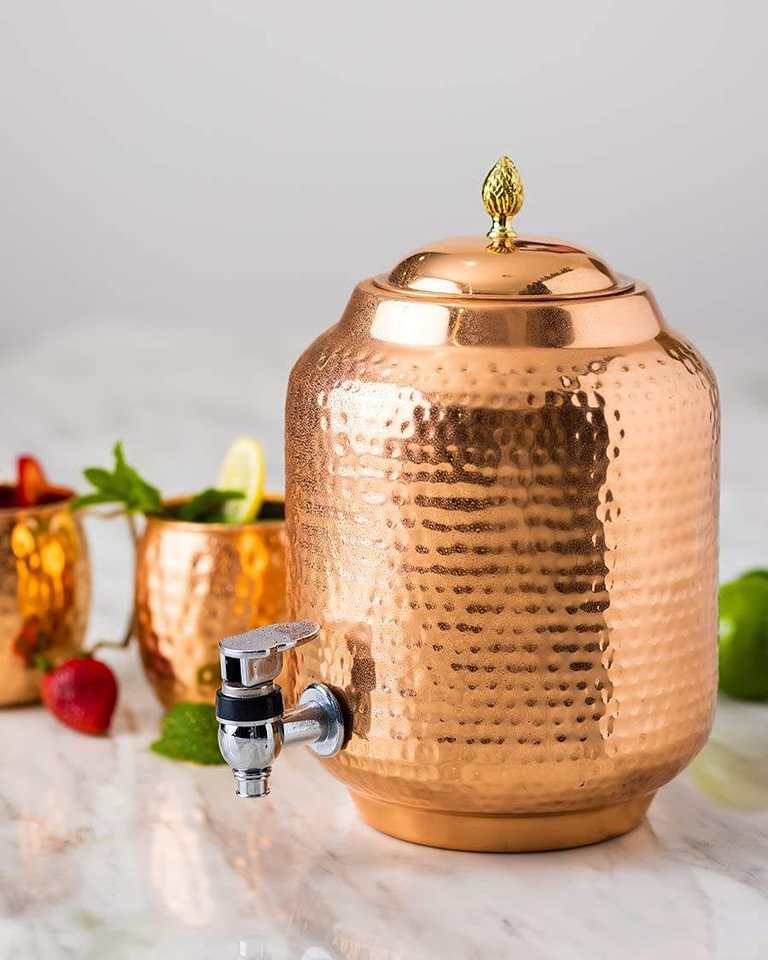 เหยือกน้ำร้อน-เย็นทรงโมเดิร์นสีทองแดง ขนาด 5 ลิตร พร้อมก๊อกทองเหลืองชุบนิกเกิล และฐานเหล็ก