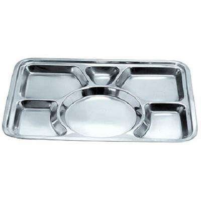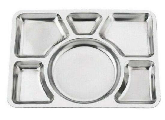 Bold Blossom Stainless Steel Six Grid Rectangle Multi Compartment Divided Classic Dishwasher Safe Fast Food Dinner Plates for