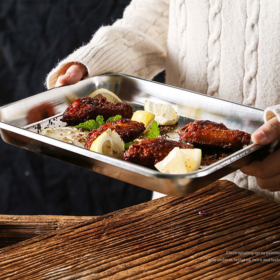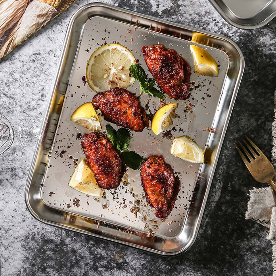 ถาดอบอาหารทรงสี่เหลี่ยมผืนผ้าแบบลึก ผลิตจากสแตนเลส 304 ปลอดภัยสำหรับเครื่องล้างจาน เป็นมิตรต่อสิ่งแวดล้อม ยี่ห้อ Bold Blossom Wholesale หลากหลายขนาด
