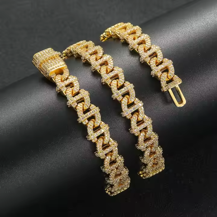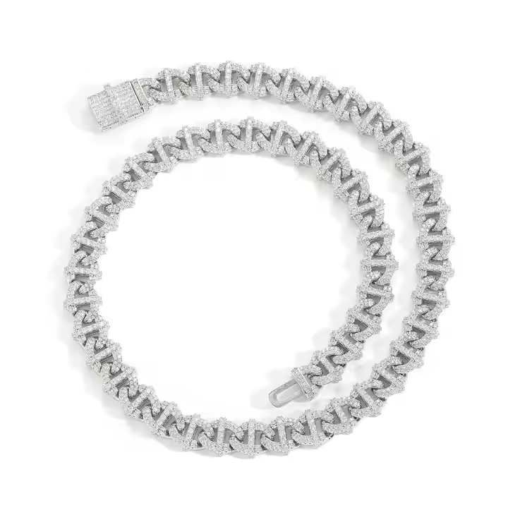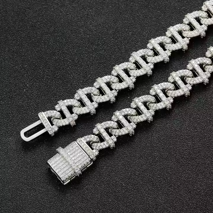 สร้อยคอคิวบาแบบหนา ประดับเพชรโมอิสซาไนต์ ระยิบระยับ ดูหรูหรา สำหรับการแต่งตัวสไตล์คนเมืองที่มั่นใจ ผู้จัดจำหน่ายจากอินเดีย