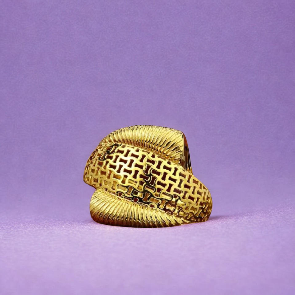 แหวนหุ้มทองหนาสำหรับผู้หญิง | การออกแบบตาข่ายแบบกว้าง | เครื่องประดับนิ้วสุดหรู