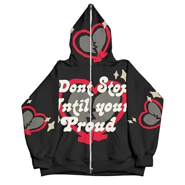 เสื้อมีฮู้ดซิปลายกราฟิกตัวหนาพร้อมข้อความสร้างแรงบันดาลใจแฟชั่นสตรีทแวร์ที่สะดุดตาสำหรับสไตล์ที่เป็นเอกลักษณ์