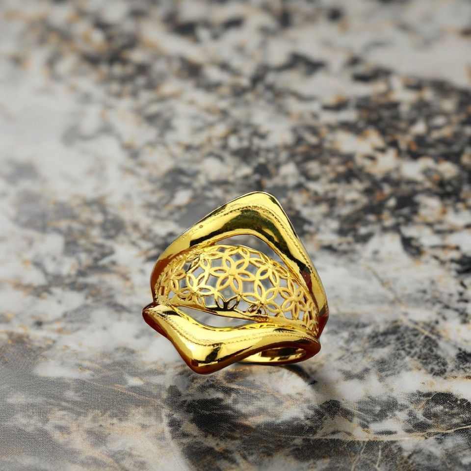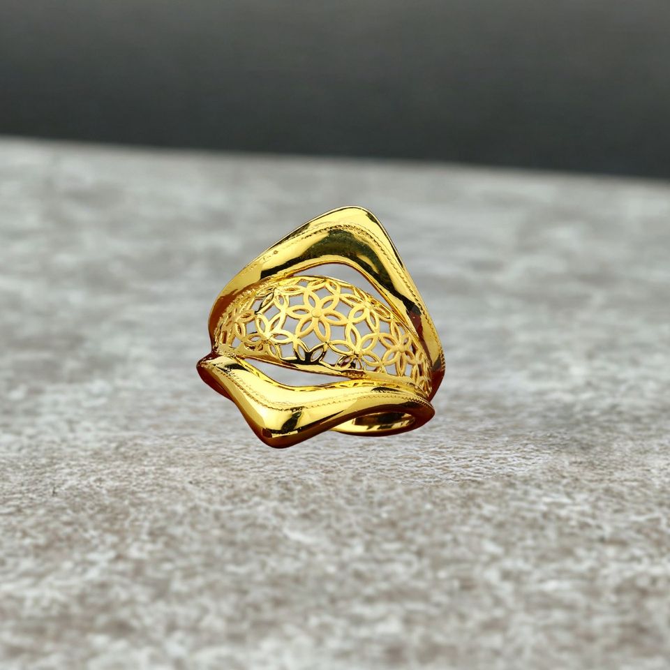 แหวนทองรังผึ้งที่ดูโดดเด่นและซับซ้อน | ดีไซน์ลายดอกไม้แบบวงกว้าง | เครื่องประดับชิ้นเด่น น้ำหนัก 3.940 กรัม