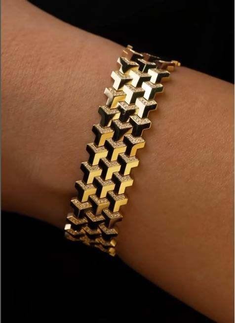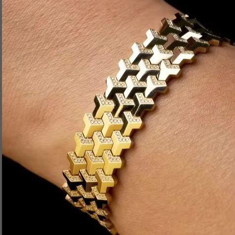 สร้อยข้อมือชุบโรเดียมแบบหนา ดีไซน์ลายรังผึ้งที่เชื่อมต่อกัน เครื่องประดับทันสมัยสำหรับสวมใส่ในชีวิตประจำวัน เพิ่มความหรูหรา