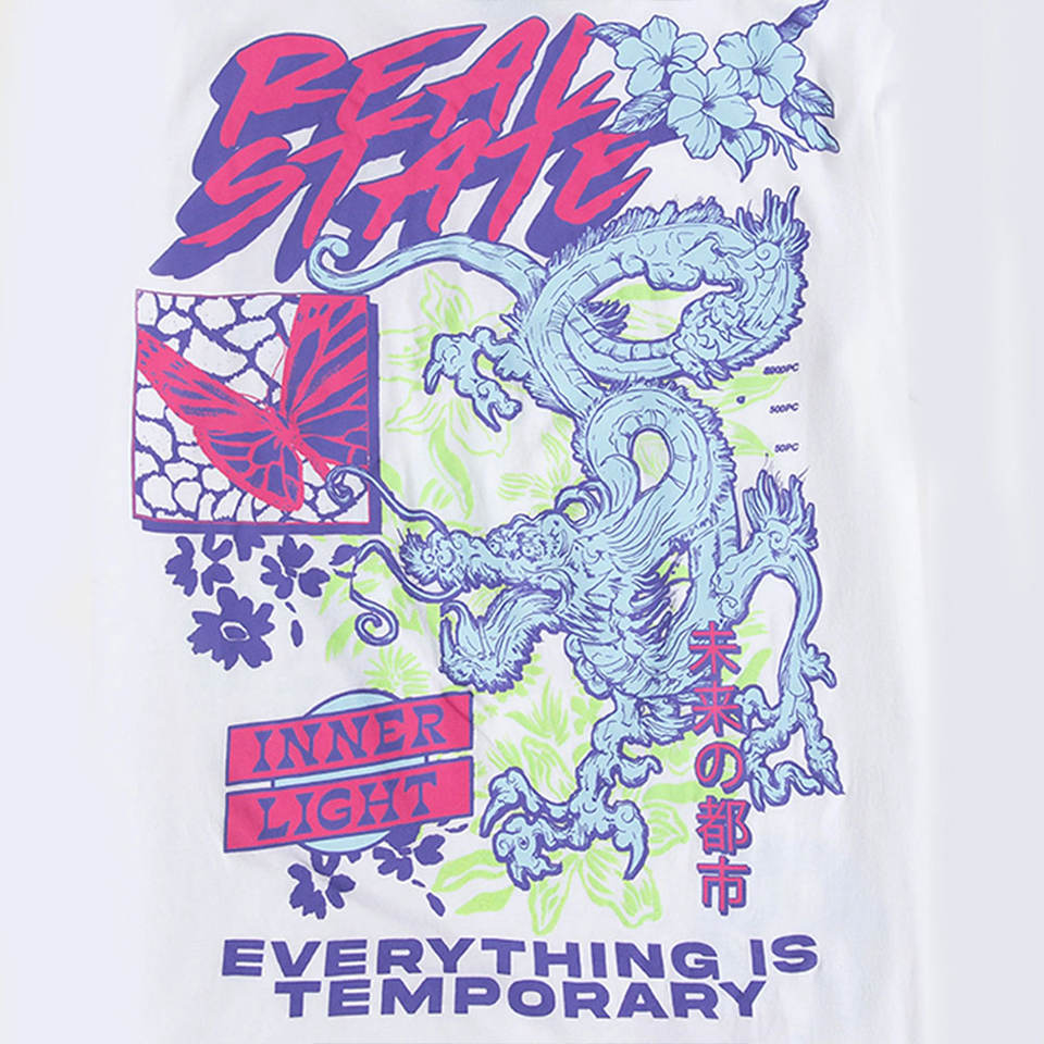 เสื้อยืดผู้ชายลายพิมพ์สไตล์วินเทจ ผ้าฝ้ายคอตตอน ดีไซน์ย้อมสีแบบแอซิดวอช สไตล์ลำลอง