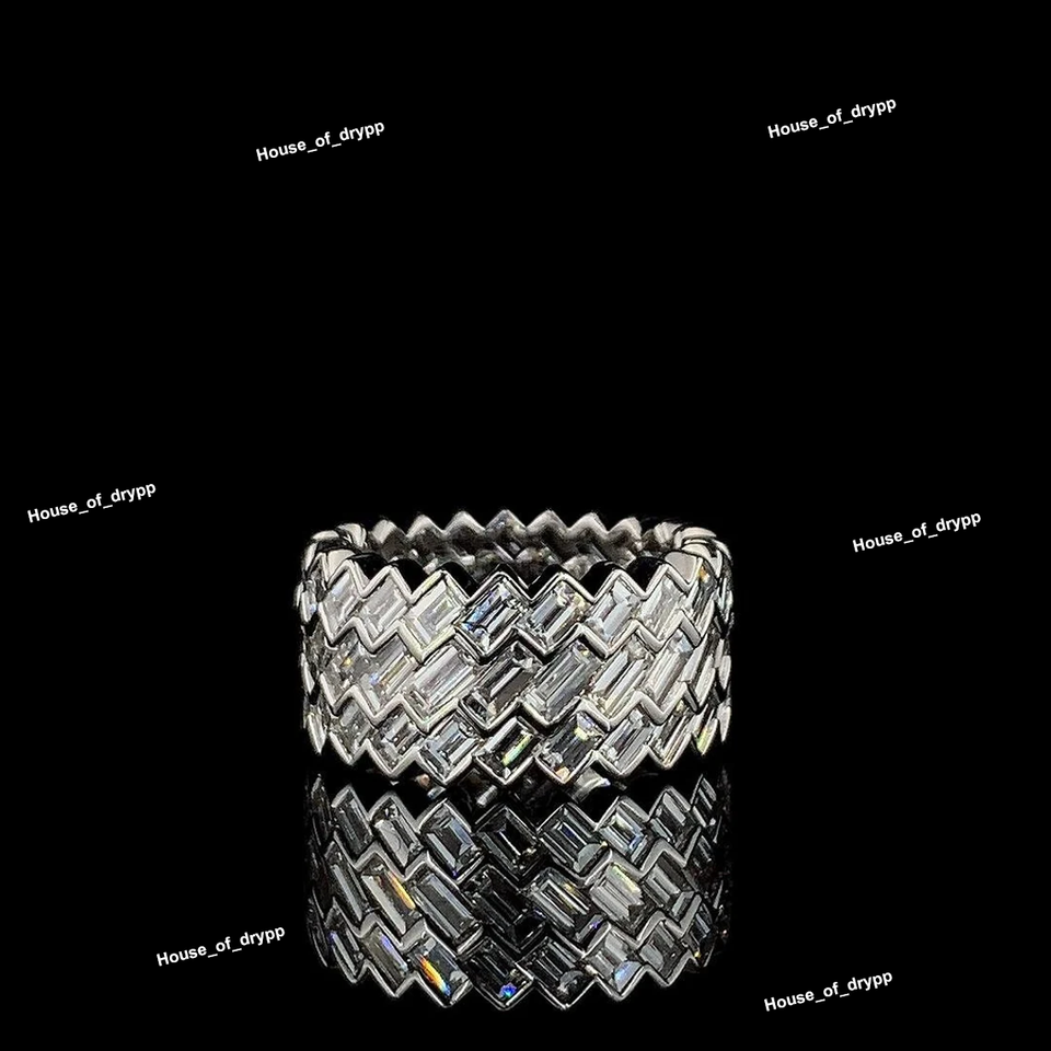 แหวนเงินทรงบาแกตต์ลายซิกแซก ดีไซน์หรูหรา ประดับเพชรเต็มวง สไตล์โดดเด่น